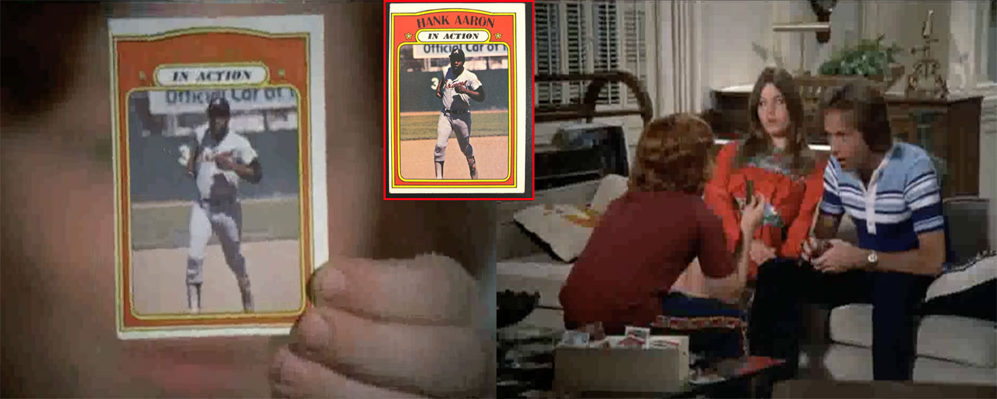 Wonder Woman (1978 episode "The Man Who Wouldn't Tell" [S2 E20]) - A Hank Aaron 1967 Topps poster insert #15 can be seen hanging on the wall in guest-star Gary Burghoff's place.