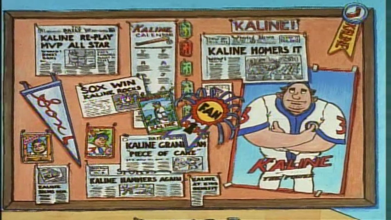 cards and there's a wooden frame or two filled with late 80s cards on the wall in his bedroom, seen in several episodes. And in one episode, he's got a book about cards next to him as he drools in his sleep.