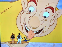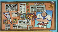 Duckman (1995 episode "The Germ Turns" [S2 E6]) - This animated adult-oriented series originally airing on the USA Network had an episode where Duckman [Jason Alexander], in a desperate attempt to be a better father, pampers his boys by showering them with gifts, including "video games, pogs, sizzling CDs by some of today's hottest and most sociopathic rap stars, and to top it off: rare, rookie season baseball cards featuring each of your favorite players." The cards are only shown for a split-second and aren't very identifiable, but there's lots of red. Perhaps they're 1990 Donruss cards? I'll bet the likes of Juan Gonzalez, Sammy Sosa, and John Olerud are in there.